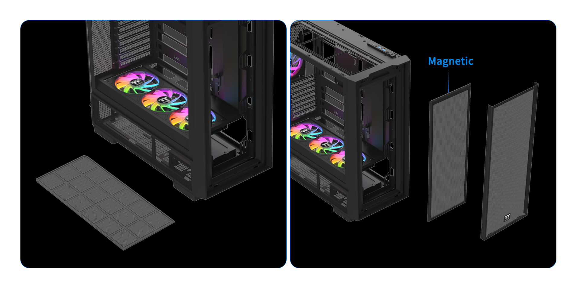 The S380 TG ARGB Mid Tower Chassis comes with a GPU holder that provides additional support, preventing graphics card from sagging.