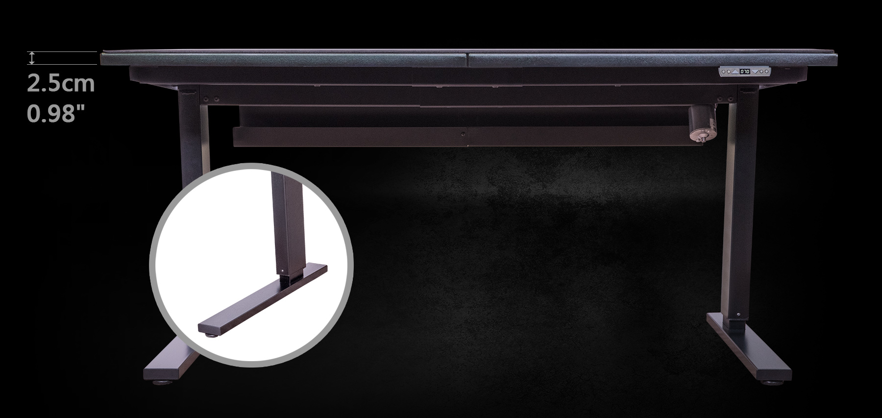 The ToughDesk 300 RGB with Built-in RGB Mouse Pad is designed to support and withstand your most intense gaming commands. Built with a high quality motor that has a maximum load of 150kg/330 lbs, you can easily adjust your desk height between 70cm/27.5” and 110cm/43.3” smoothly. It ensures smooth and silent operation when adjusting heights even with a heavy gaming system.