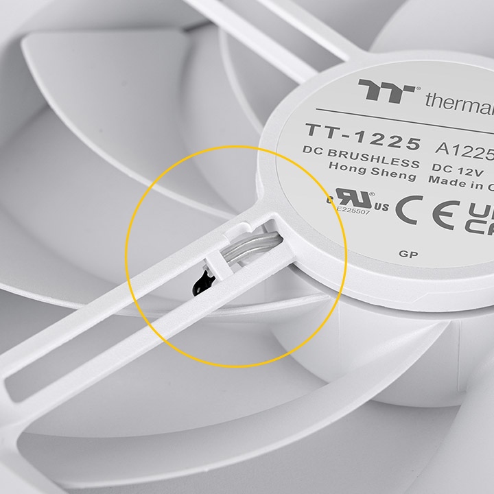 With a temperature sensor at the rear of the fan, the TS EX RGB White provides an additional fan speed control. This sensor can monitor the air temperature near fan, enabling dynamic speed management based on localized conditions.