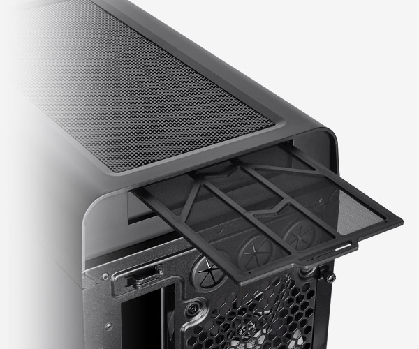 Preinstalled two of 120mm fans and a top-mounted 200mm fan including a back blue LED fan to optimize system ventilation. In order to keep the interior dust free, all intake ventilation holes come with dust protection including a removable dust filter at the bottom of the chassis.